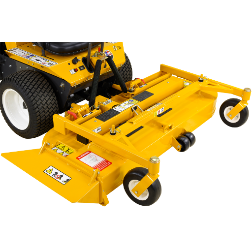 A three-blade, gear-driven design, the 56-inch discharge deck excels at high production mowing across most grass types and conditions, especially finished turf. This heavy-duty deck uses cast iron gearboxes for durability and a tunnel design to efficiently move high volumes of cut material from under the deck.