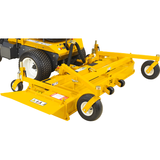 Walker’s largest deck and the largest deck in the industry for mid-size commercial mowers, the D74 uses a four-blade design with cast iron gearboxes. The combination of Walker’s full-floating deck suspension and rear gauge wheels help hold the contours of the terrain and prevent scalping. This deck is ideal for flat, open turf and is a favorite on athletic fields and parks. Standard with cast iron gearboxes.
