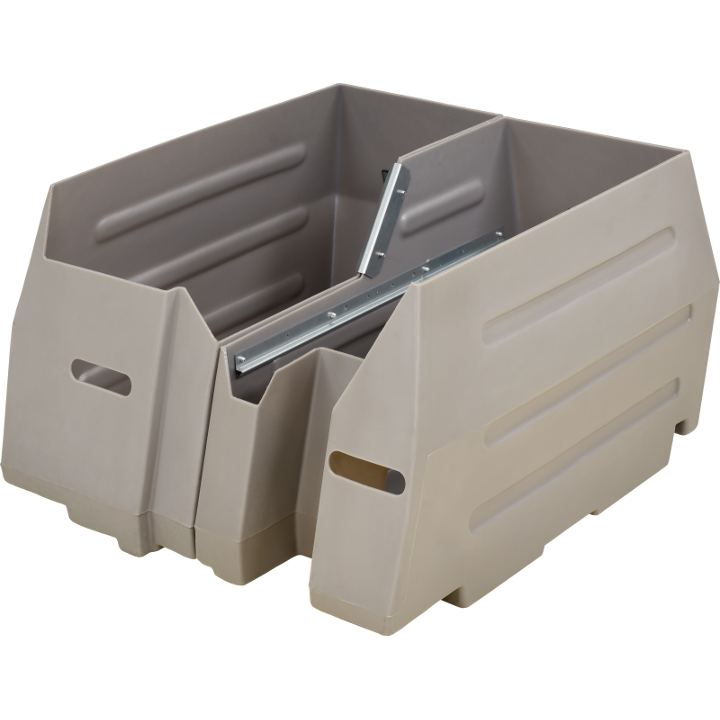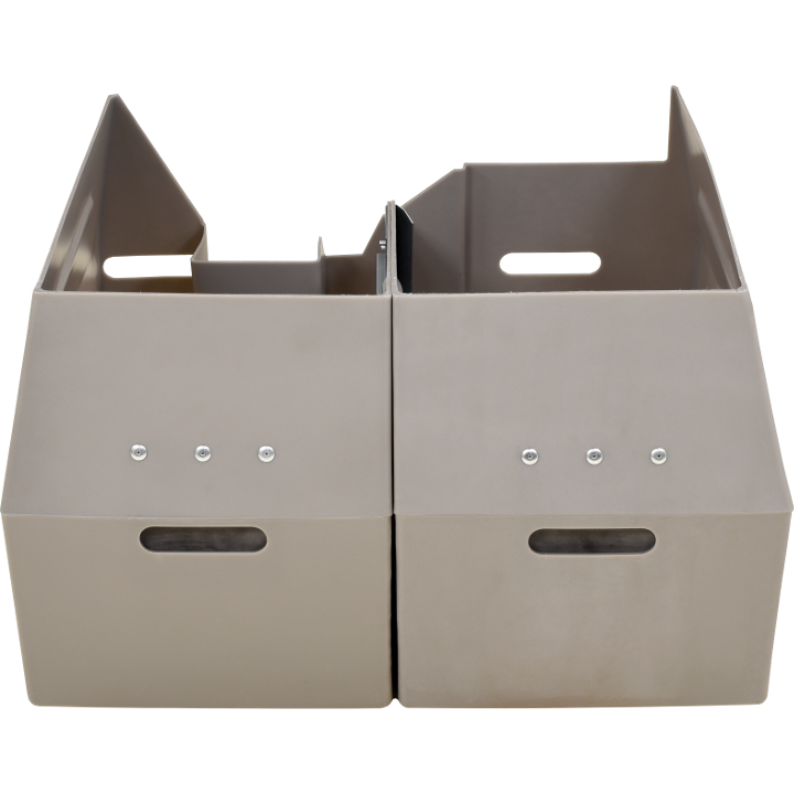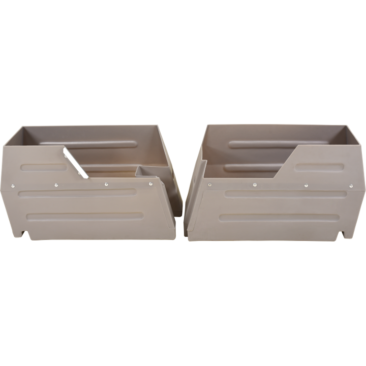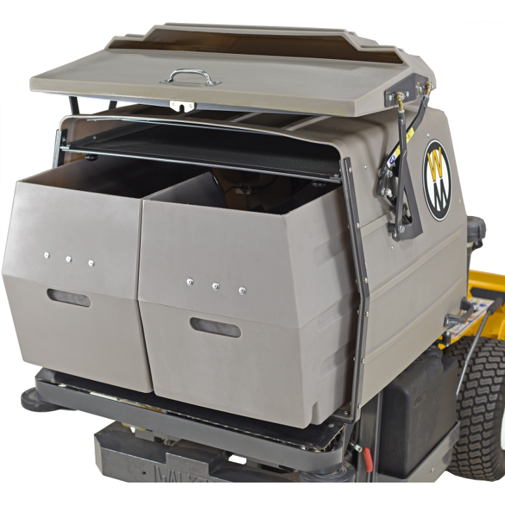 These two bins slide into the Walker 10 and 9.5-bushel catcher, making the dumping of grass clippings much easier by dividing the clippings in half. This is especially useful for single operators working by themselves.
