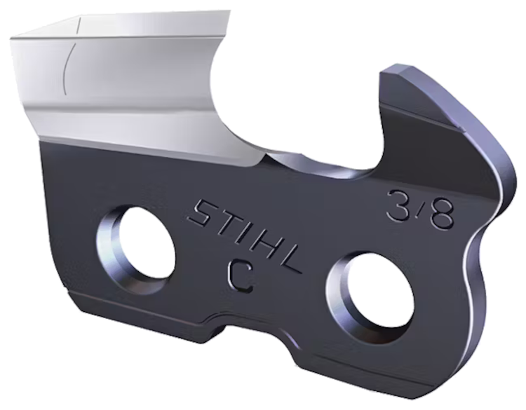 STIHL RAPID™ Super 3 is a reduced-vibration and low-kickback version of STIHL RAPID™ Super. The Stihl 36 RS3 is an aggressive, fast-cutting, full-chisel chain with a single-humped drive link to reduce kickback. The cutter and tie strap design reduce vibration levels when cutting. The razor-edged, square-cornered cutter shape ensures minimum chain friction for an exceptionally smooth and clean cut in hard or frozen wood. It offers excellent cutting and plunge-cutting efficiency. The RS3 chain typically cuts faster than the RM chain but requires careful sharpening and maintenance.