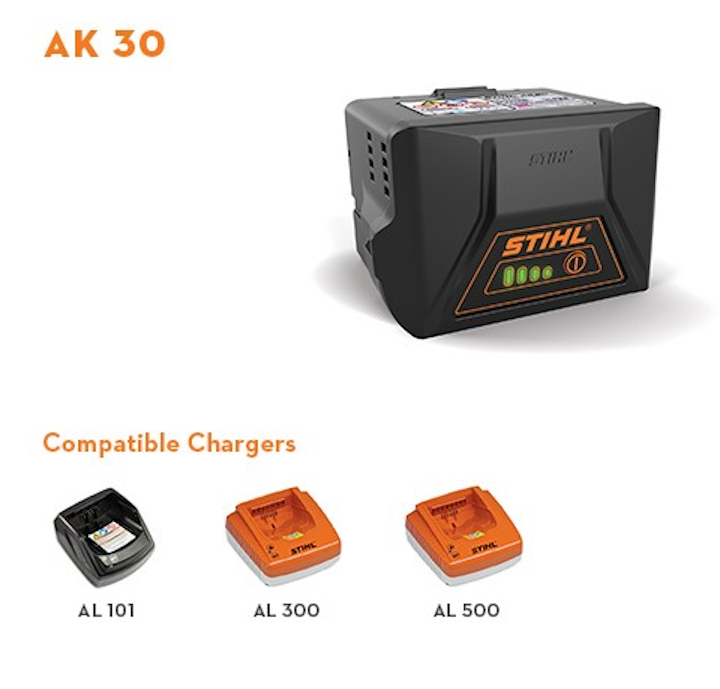 The Stihl AK 30 Battery is the most powerful in the STIHL AK Series, providing up to 80% longer run times than the AK 20 and allowing users to get more work done on a single charge. This lithium-ion battery is lightweight at 2.9 lbs. and features an excellent power-to-weight ratio that uses 36 volts. It is compatible with any STIHL battery charger and is an affordable option for homeowners with suburban yards. Check out this and other STIHL batteries at our Dealership today!