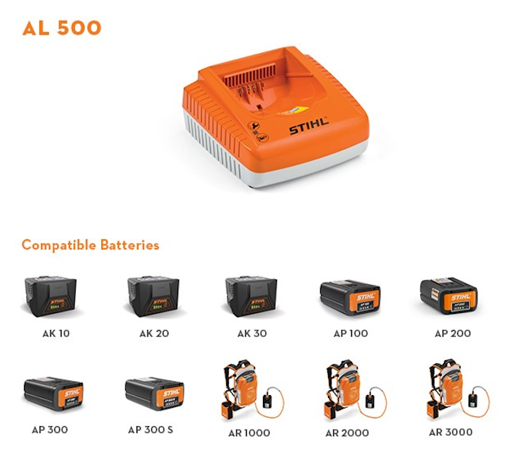 The Stihl AL 500 Charger offers the fastest charge times for all STIHL Lithium-Ion batteries.