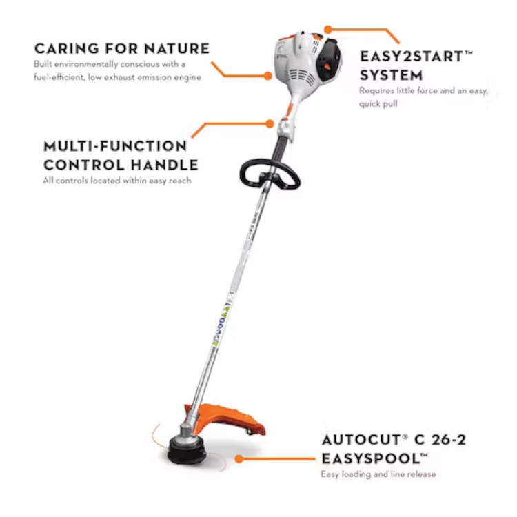 A straight-shaft grass trimmer with a fuel-efficient engine and STIHL Easy2Start™.