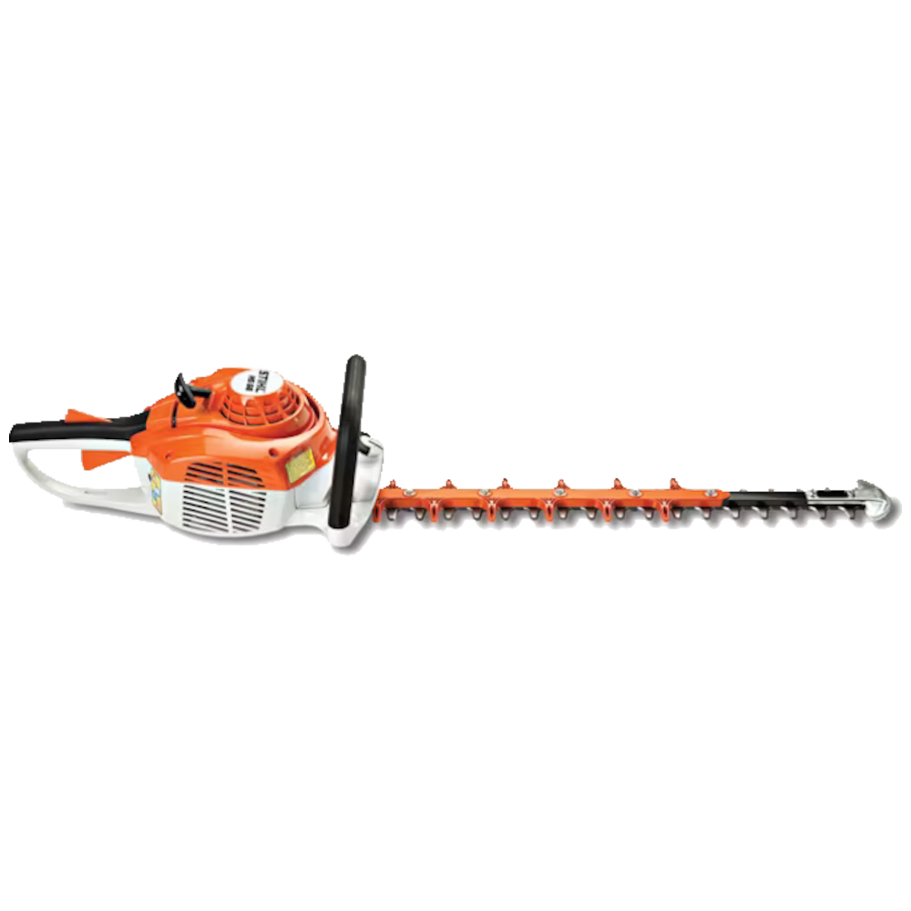 The lightweight Stihl HS 56 hedge trimmer offers professional-grade cutting power.