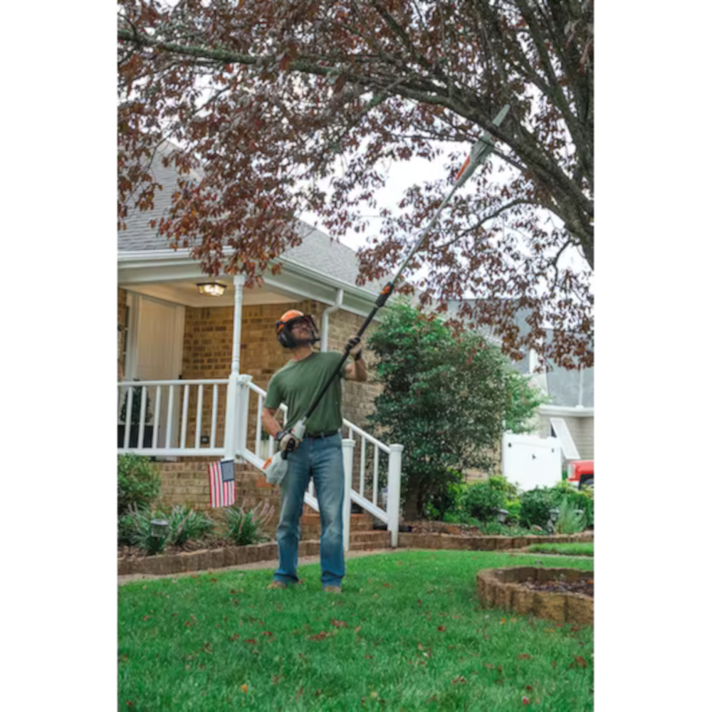 The STIHL Inc. “Caring for Nature” seal identifies its powered products that are more environmentally conscious, producing zero or low exhaust emissions. STIHL Inc. defines “low exhaust emissions” as cleaner than EPA and CARB exhaust emission standards. - 9’2″ total tool length