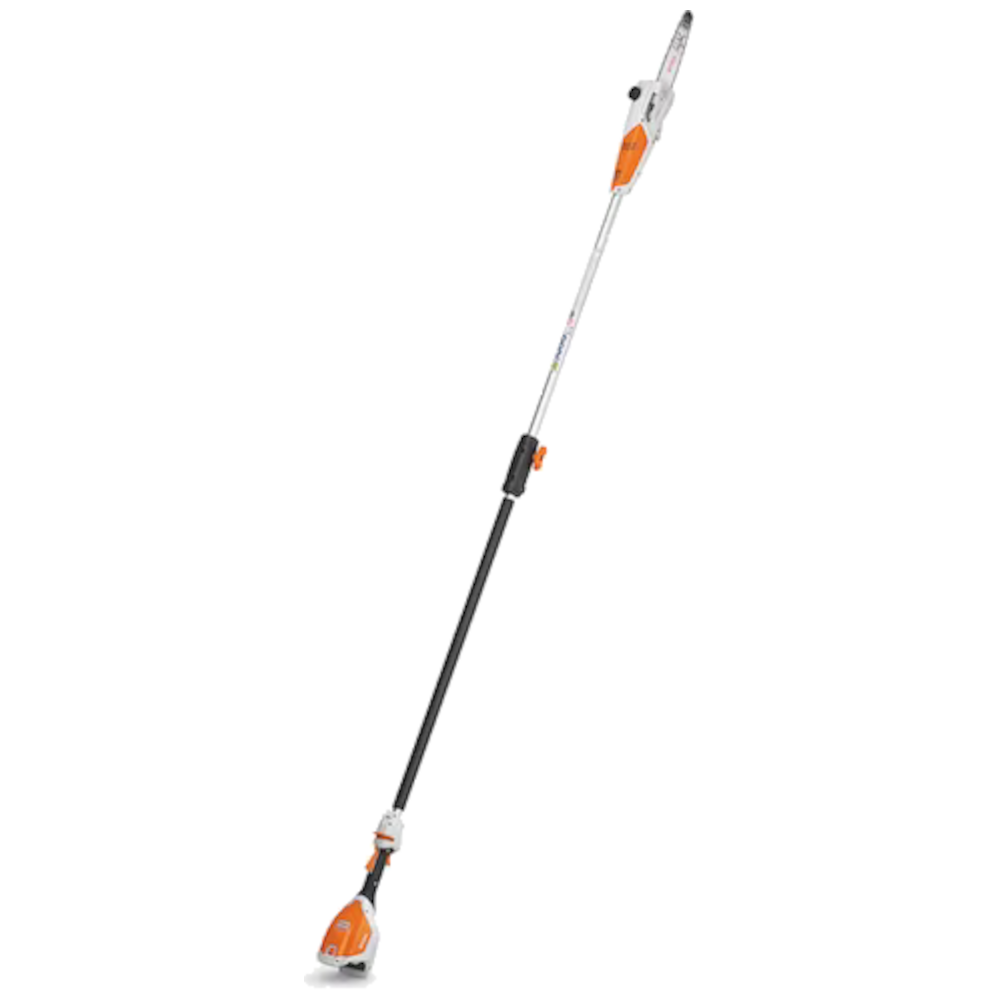 As the first pole pruner in the STIHL AK System, the battery-powered Stihl HTA 50 allows homeowners to trim hard-to-reach areas in their yards confidently. Featuring a lightweight extended-reach design, the Stihl HTA 50 is comfortable to operate with its 9’2″ overall length – or nearly 11′ when paired with an optional 20″ shaft extension. Despite its long reach, the Stihl HTA 50 is still easy to store and transport due to its split-shaft design. A 10″ guide bar with ¼” STIHL PICCOâ„¢ saw chain provides exceptionally smooth, clean cuts – perfect for all your tree care needs. The Stihl HTA 50 is quiet to operate, making it an excellent choice for noise-sensitive environments and allowing for operation without hearing protection. Utilizing the AK 20 battery and AL 101 charger, the HTA 50 will fit seamlessly into any homeowner’s existing lineup of STIHL AK System tools.