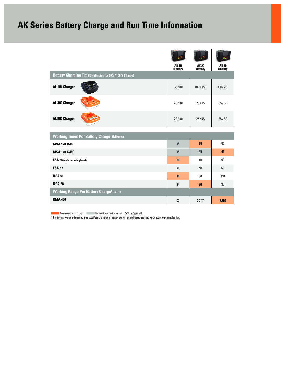 | RUN TIME (w/ AK 20) UP TO | 40 min. |
