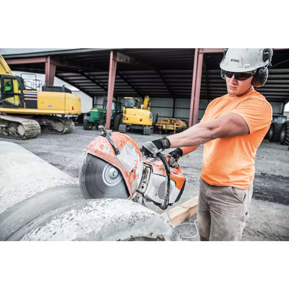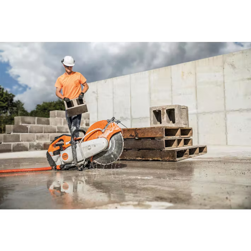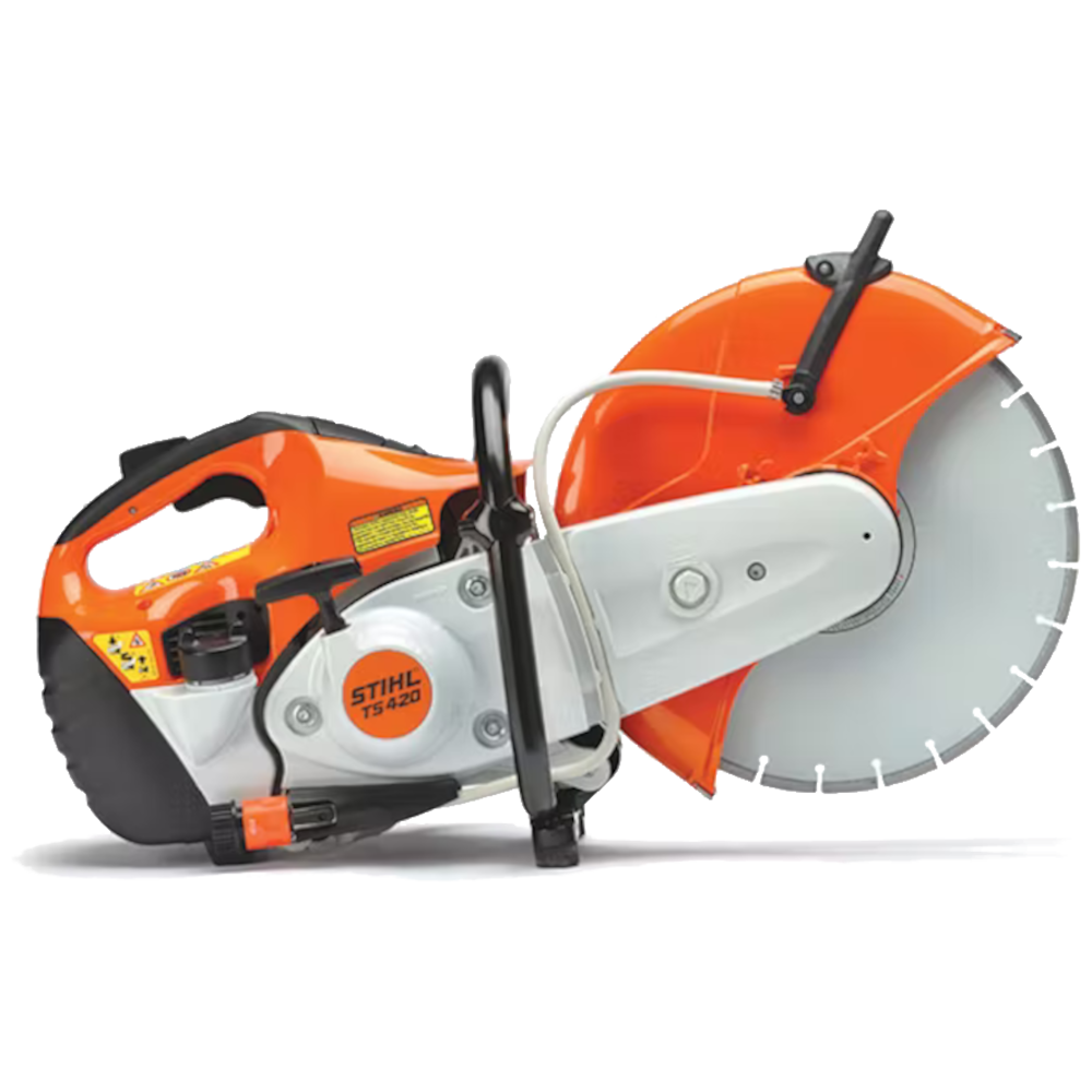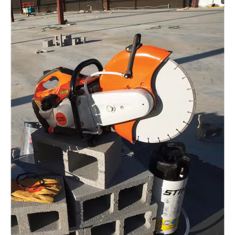 The STIHL TS 420 Cutquik® cut-off machine is one of the best we’ve ever built. It will help you work longer and more comfortably. This Stihl TS 420 cut-off machine comes with a 14″ wheel, delivering a unique blend of performance and efficiency so you get the job done right. With the revolutionary X2 air filtration system, an anti-vibration system, and a lightweight design, you get low maintenance and more maneuverability. Its advanced engine technology also increases fuel efficiency and reduces emissions.