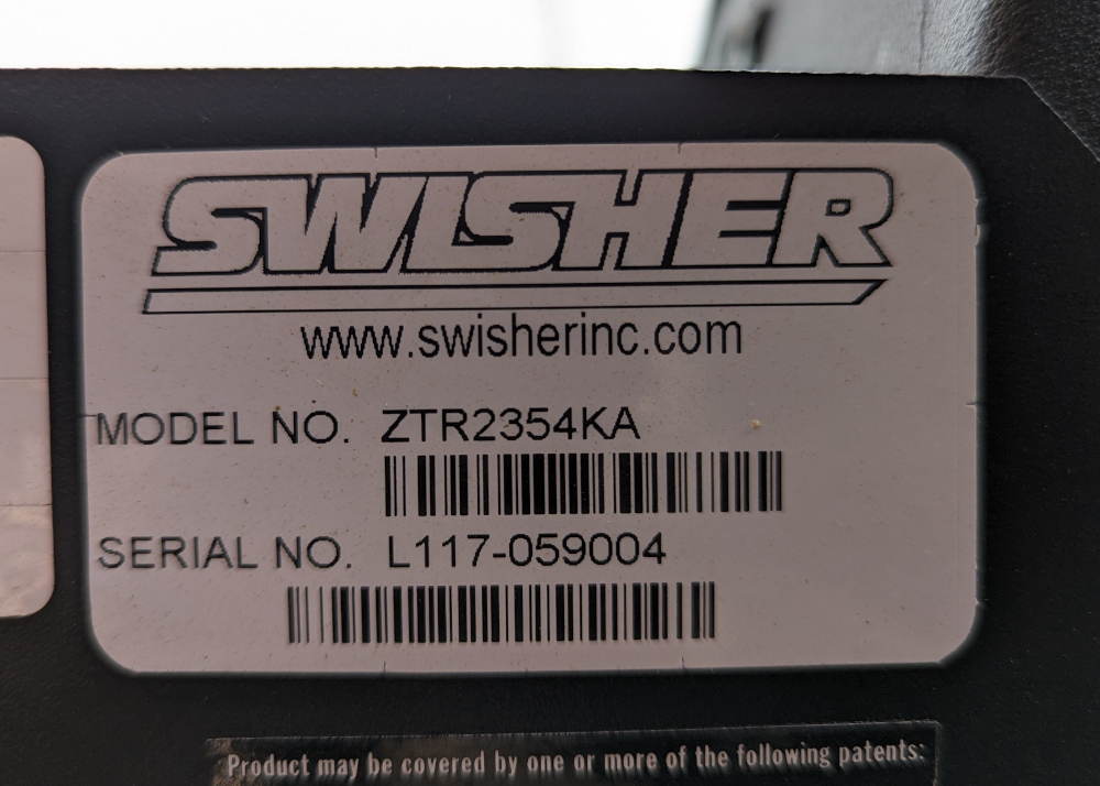 - Model Swisher ZTR2354KA Serial L117-059004