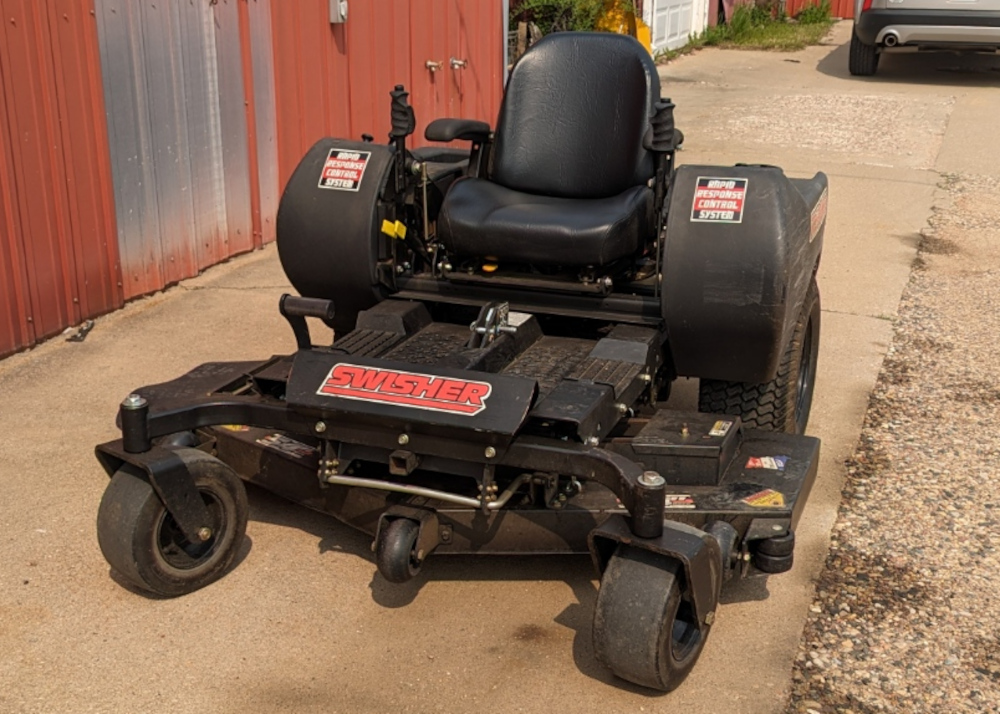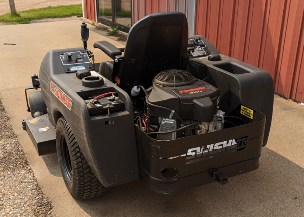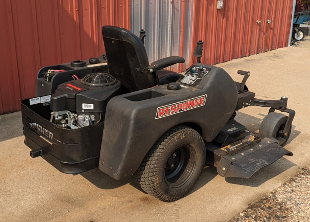 This Swisher ZTR-2354KA ZTR Riding Mower has low hours. And it has had its engine oil changed and blades re-sharpened. It was used by a homeowner who just cut his lawn. You will sit back like a sports car, and its Rapid Response Control System allows instant turning and maneuvering. The Kawasaki 23 HP engine is known for its long life and high performance. It is ready to take home and mow your lawn.