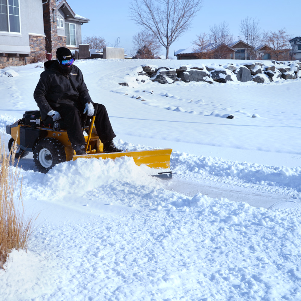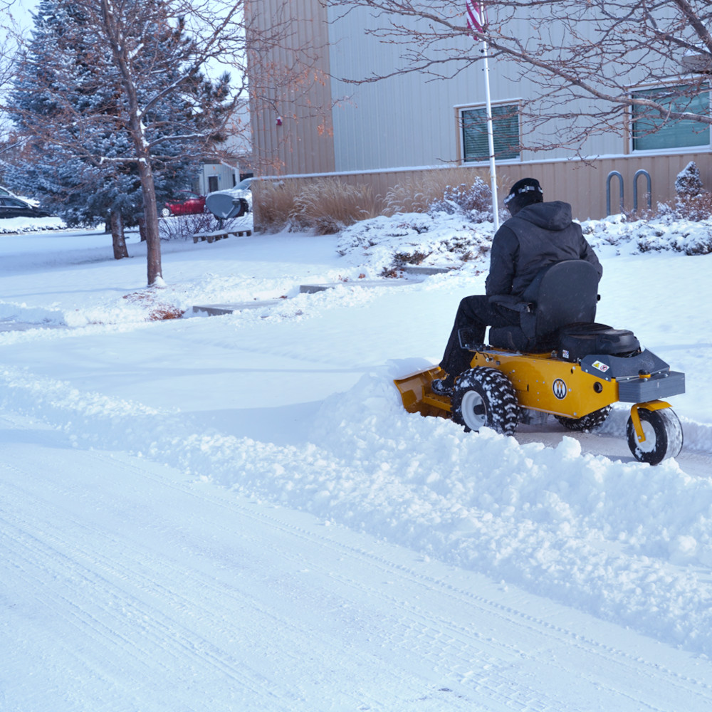 Designed specifically for the Walker Model R, the Walker A44 is ideal for removing snow from sidewalks, driveways, and other pedestrian areas. It is also a light utility tool for moving dirt, mulch, or other debris. The Walker A44 features a five-way foot-engaged angle adjustment, trip-over protection, +/-5° of lateral articulation to follow ground contour for even cleaning over the entire blade width, a manual lift lever with a thumb trigger release, and integrated footrests.