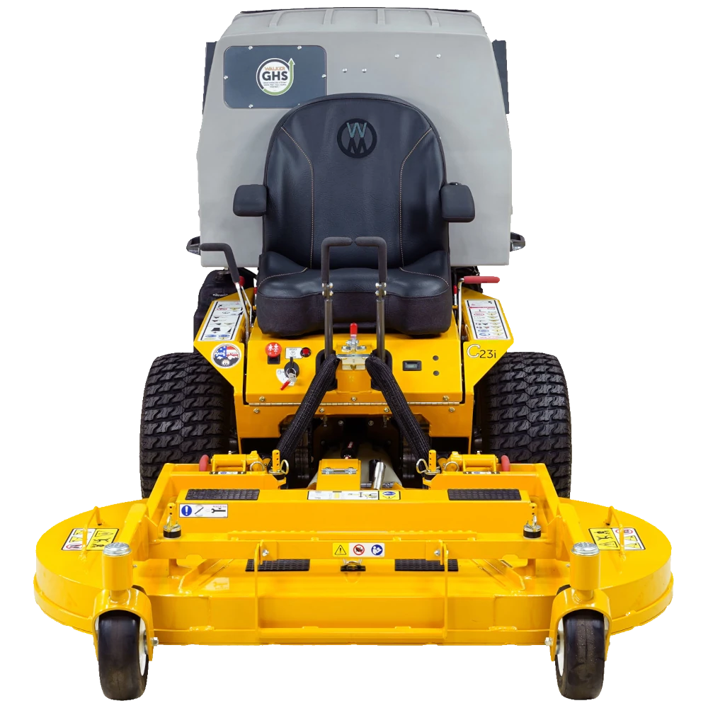 The C23i features components made from sheet and tube laser-cut parts, extensive robotic welding, and modular assemblies, which result in precise, repeatable, and durable components. The mower is designed for efficiency, reliability, and low maintenance. It includes a 13.25-inch thru-shaft Grass Handling Systemâ„¢ (GHS) blower, Hydro-Gear transaxles, and a Kohler Command Pro EFI engine.