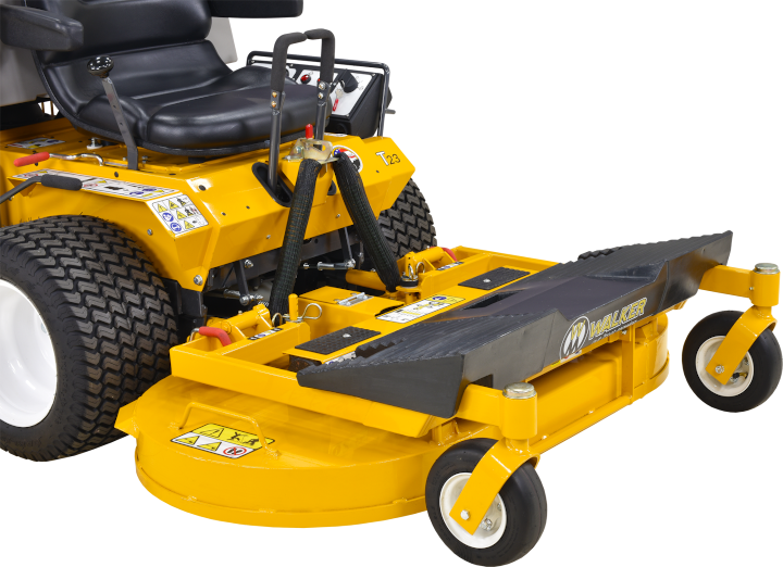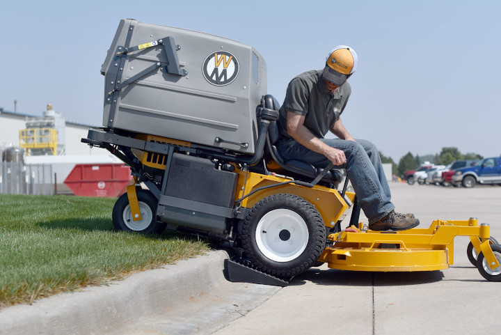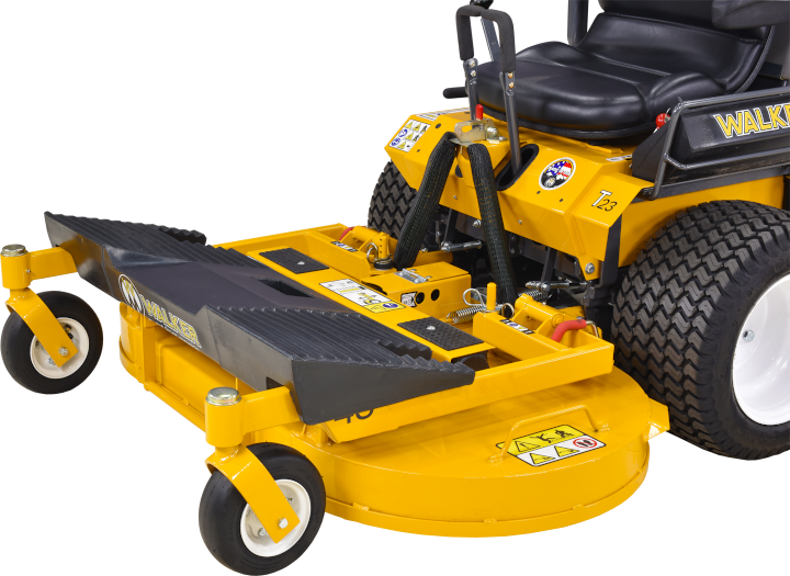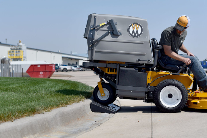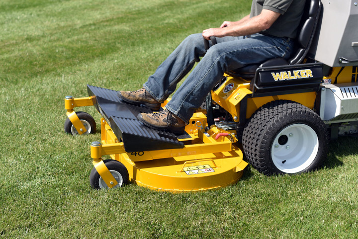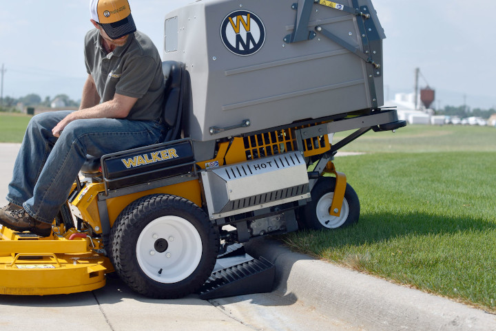 This Walker Curb Jumper with a 40-inch wide ramp allows Walker Mowers to quickly back over a standard curb to access medians, landscaped parking lot areas, and raised beds. When unused, the ramp stows on the mowing deck carrier frame and functions as an expanded footrest. This one is designed to fit the deck with a single lever height adjuster installed.