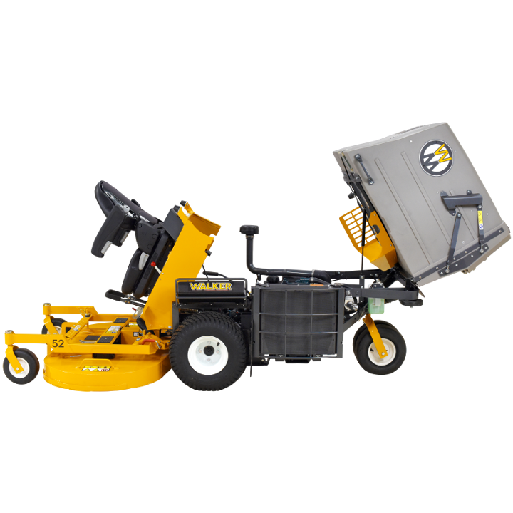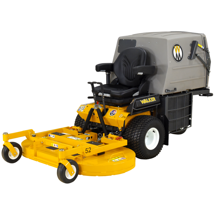 The Walker D21d-11 Collection Tractor is designed with the same footprint as the Model T, making it compact and capable of mowing small and large properties while boasting a transverse-mounted, three-cylinder diesel engine and liquid cooling. A self-cleaning, reversing radiator fan keeps the Model D operating cool and efficient even in the harshest conditions. Weighing just under 1,200 lbs, the Model D is one of the lightest diesel-equipped commercial mowers on the market, and this protects the turf from matting and rutting while allowing the Model D to remain well-balanced and agile. Compatible with nearly all Walker mowing decks and add-ons, the Model D is a favorite with municipalities and institutional customers. A non-collection version without the GHS blower and Grass Catcher is also available. The D21d-15 non-collection model features a utility dump bed instead of the grass catcher.