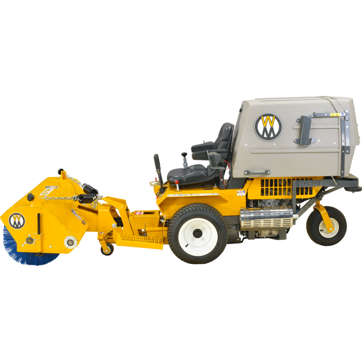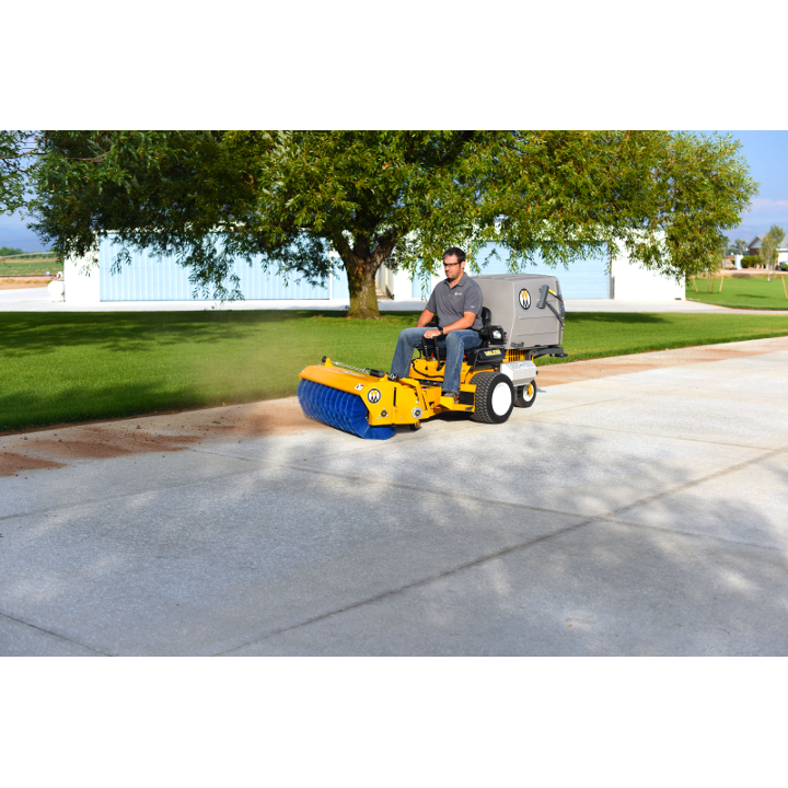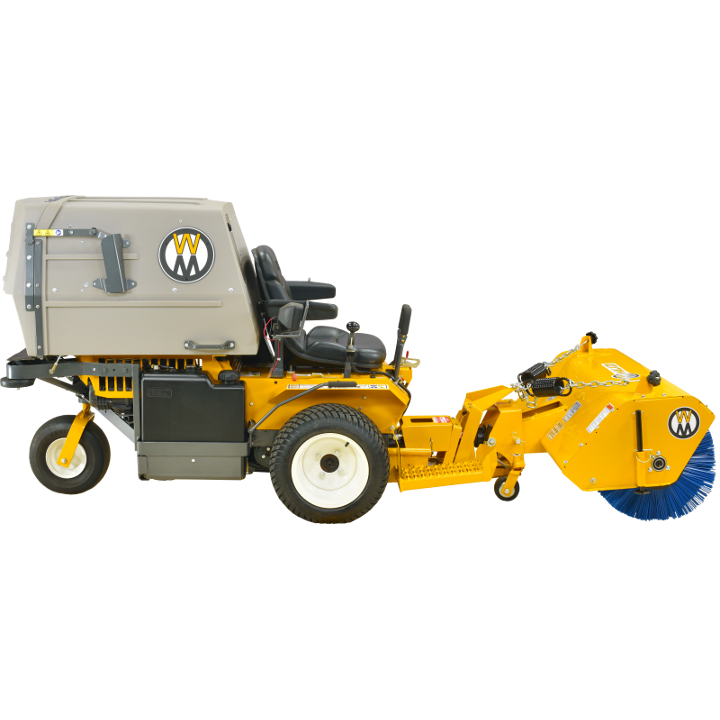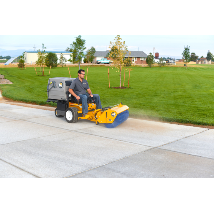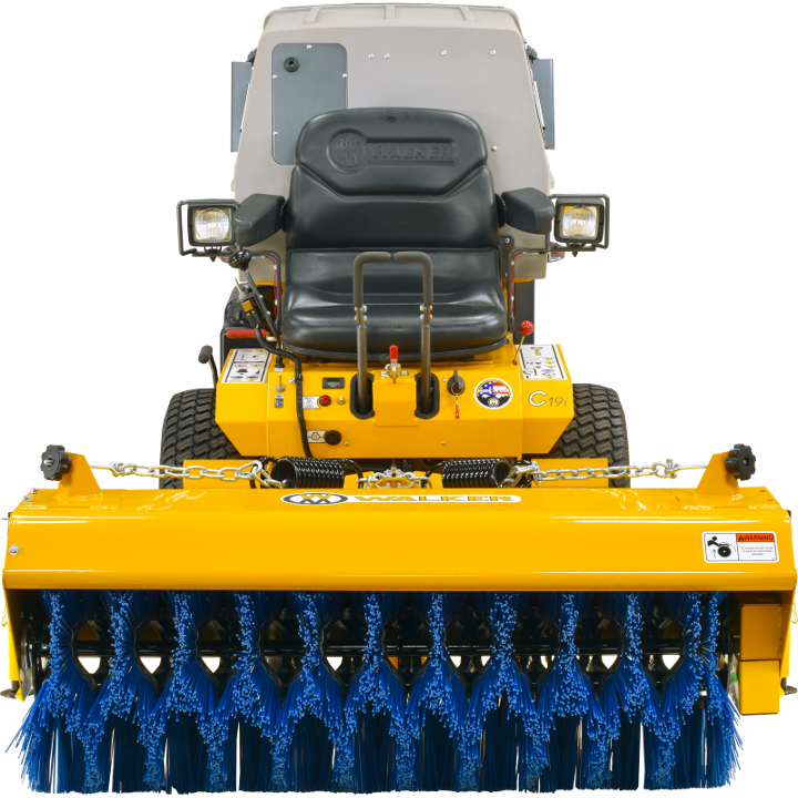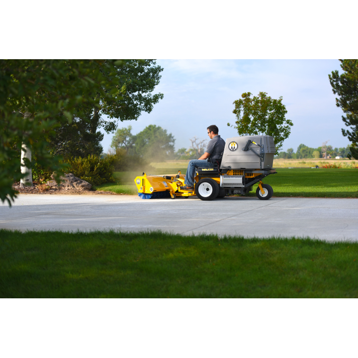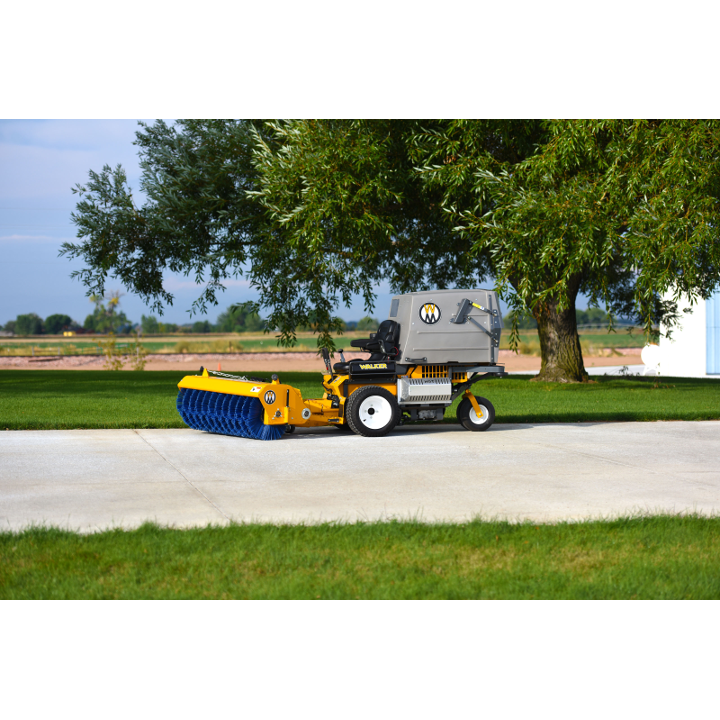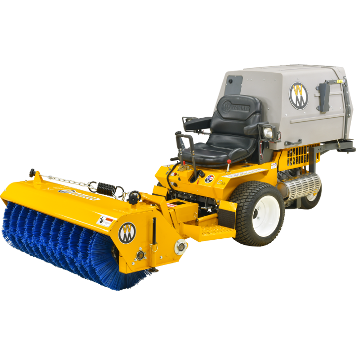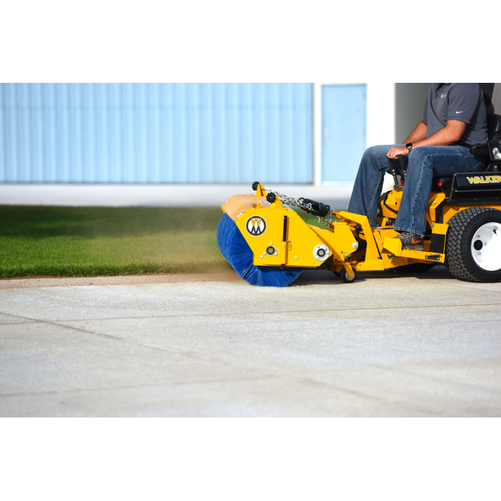 The Rotary Broom does a great job of sweeping and removing gravel and debris from turf areas along roads, paths and playing fields. Down pressure is spring weighted and is adjustable for great sweeping action and minimum brush wear. The Rotary Broom is another way to extend the usability of the Walker commercial riding lawnmower.
