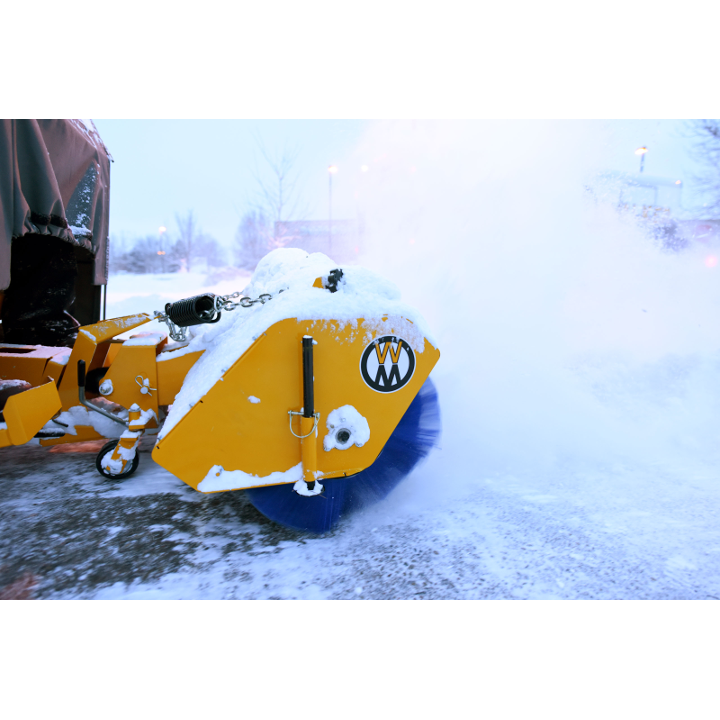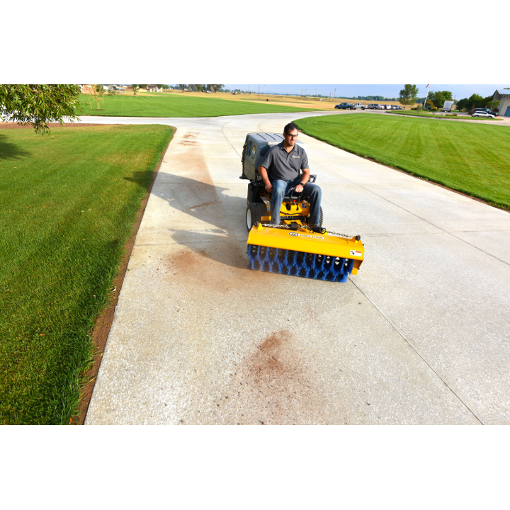 The Rotary Broom, with a 47-inch sweeping path and five-position angle head, is ideal for sweeping debris or light snow from hard surfaces.