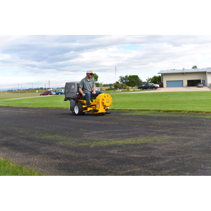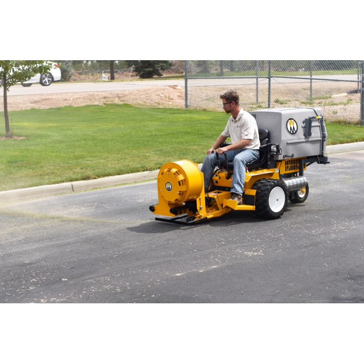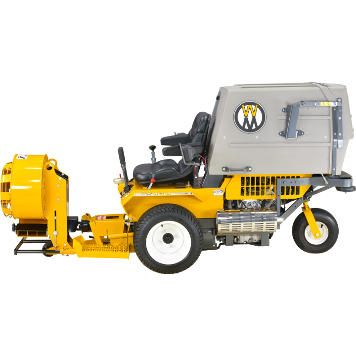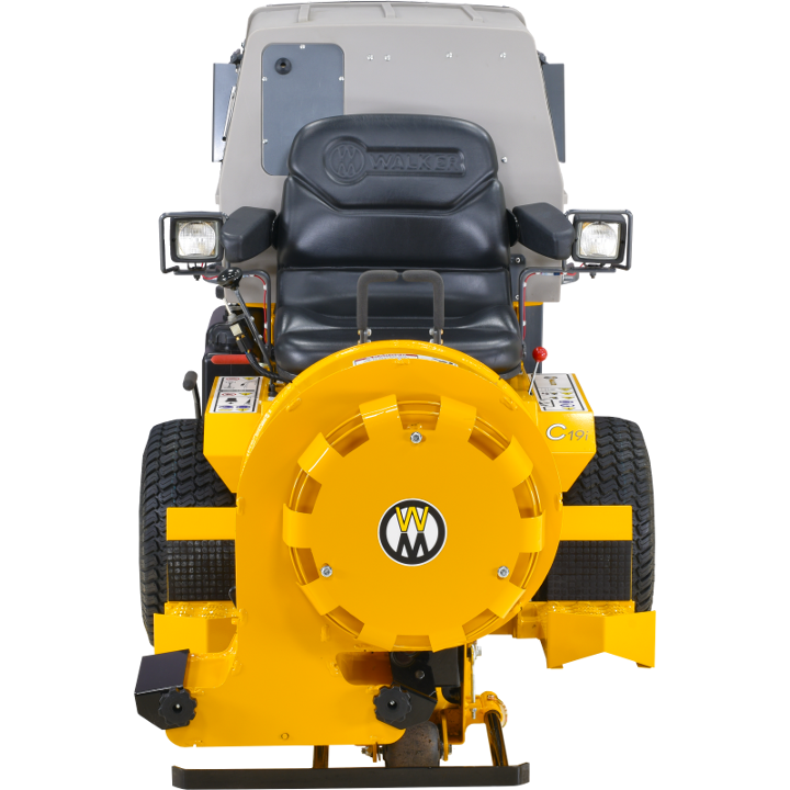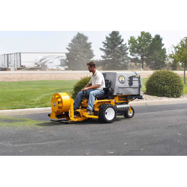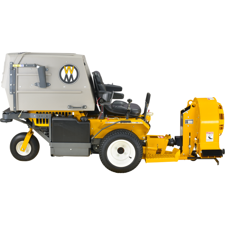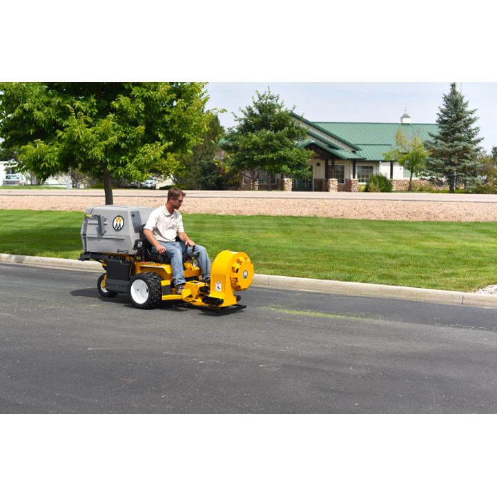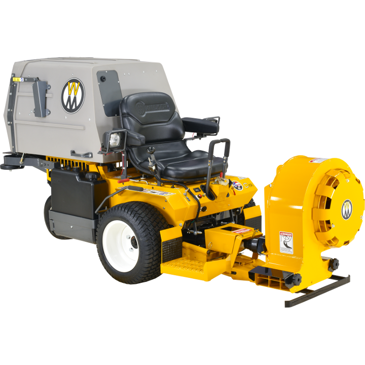 Useful for landscape clean-up and leaf removal, the Debris Blower quickly mounts to the implement hitch and gives the Walker Mower owner full three-season use.