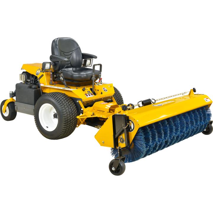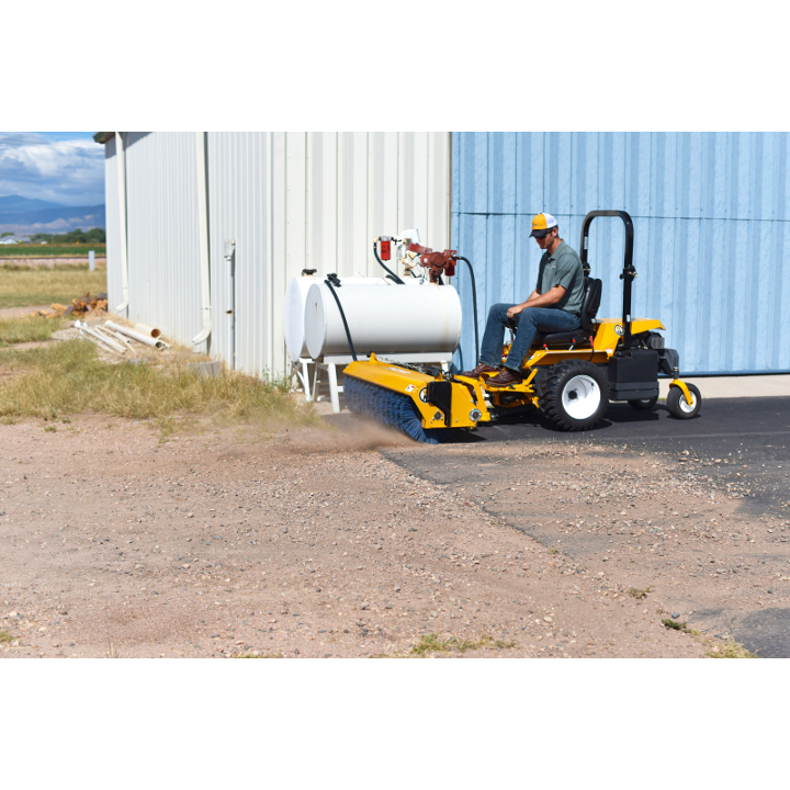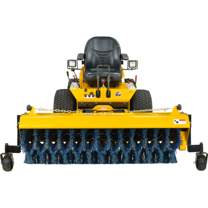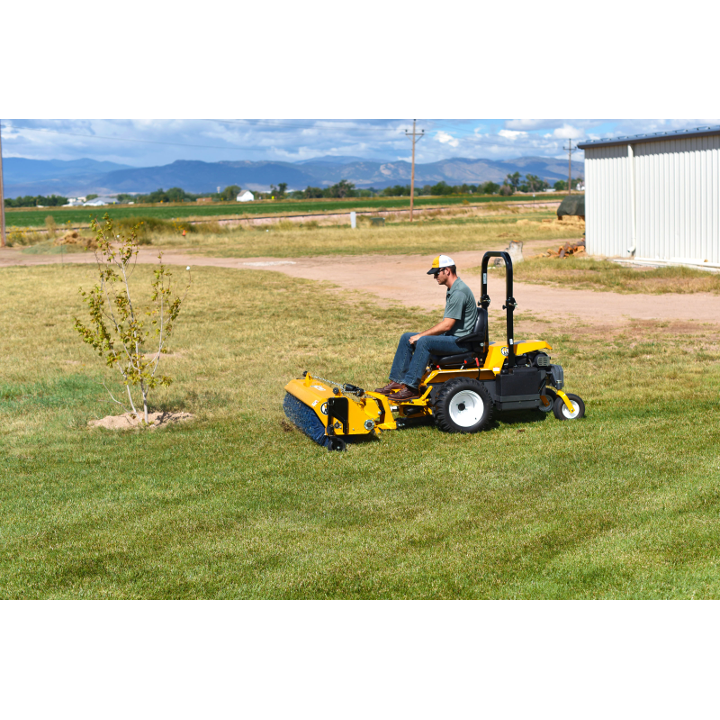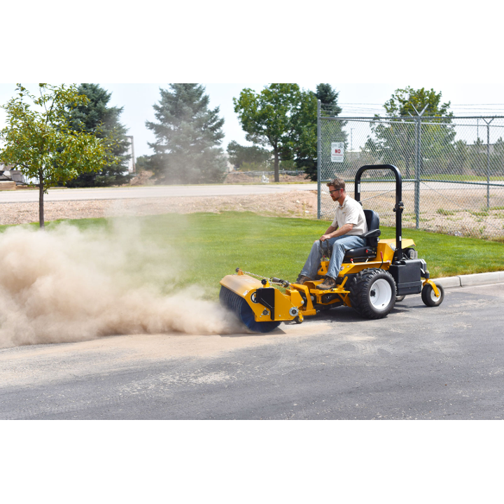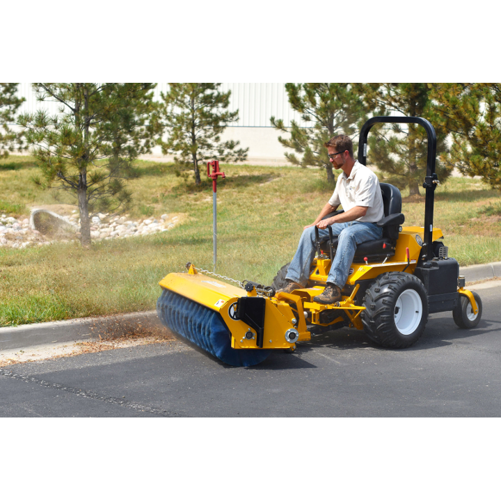 Light snow and debris on hard surfaces are easily swept away with the 60″ Rotary Broom. The five-angle position head helps the Rotary Broom do a great job of sweeping and removing gravel and debris from hard surfaces along roads, paths, and playing fields, and can also be used for lawn dethatching and raking. Down pressure is counter-weighted and is adjustable for great sweeping action and minimum brush wear.