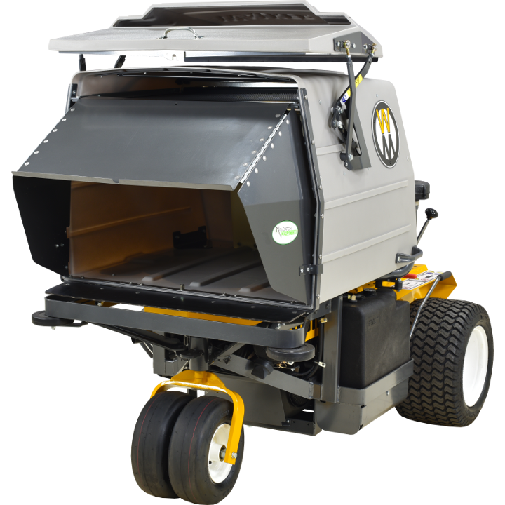 The No-Catch Deflector easily installs in the grass catcher door frame to allow “no collection” rear discharge mowing with GHS models. Grass clippings are safely deflected downward and spread across the door opening.