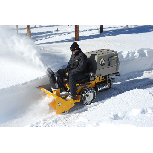 Just the right size for tackling sidewalks and driveways, the 36″ Single-Stage Snowblower mounts directly in place of the mower deck in just a few minutes. No Implement Hitch is required. The A11 Snowblower is compatible with all Walkers with the exception of the Model H tractors. The A11 Snowblower is the perfect winter season add-on to give the Walker year-round versatility. It is a compact, powerful addition to the Walker Mower.