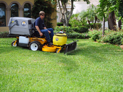 A spray gun with a 20-foot hose allows the operator to leave the mower and apply liquid material to all landscape features. The spray tip adjusts to offer varying output from a mist to a 35-foot stream. The 25-gallon tank allows easy cleaning of the tank and spray system.