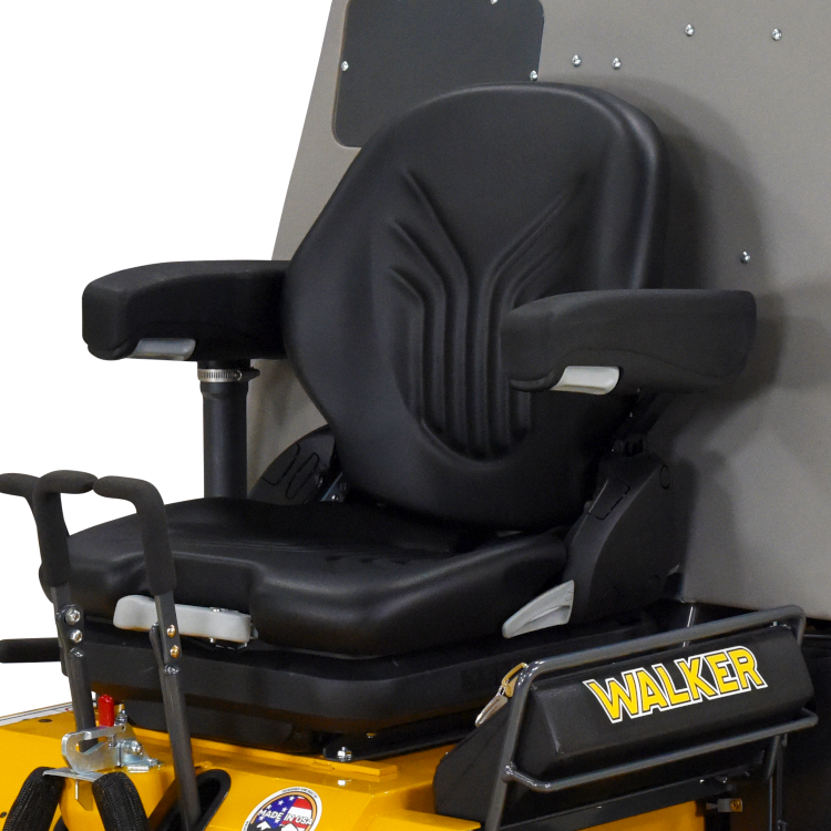 Made by Grammer, this full-spring suspension seat includes dampening and adjustments for the back angle, lumbar support, and operator weight. Armrests are standard on the Suspension Seat.