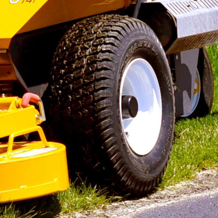 Remove (-2) 18 x 8.5-10 Turf Tires and install (2) 18 x 7-8 Turf Tires