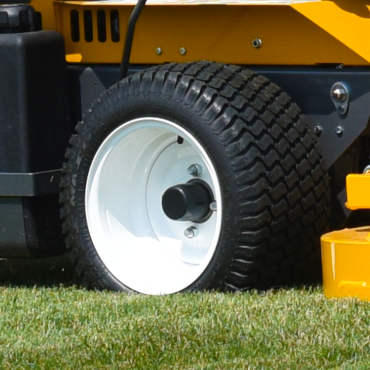 Turf tires feature a good balance of low ground pressure and operator comfort while offering increased stability on slopes and less sidewall flex in turns.